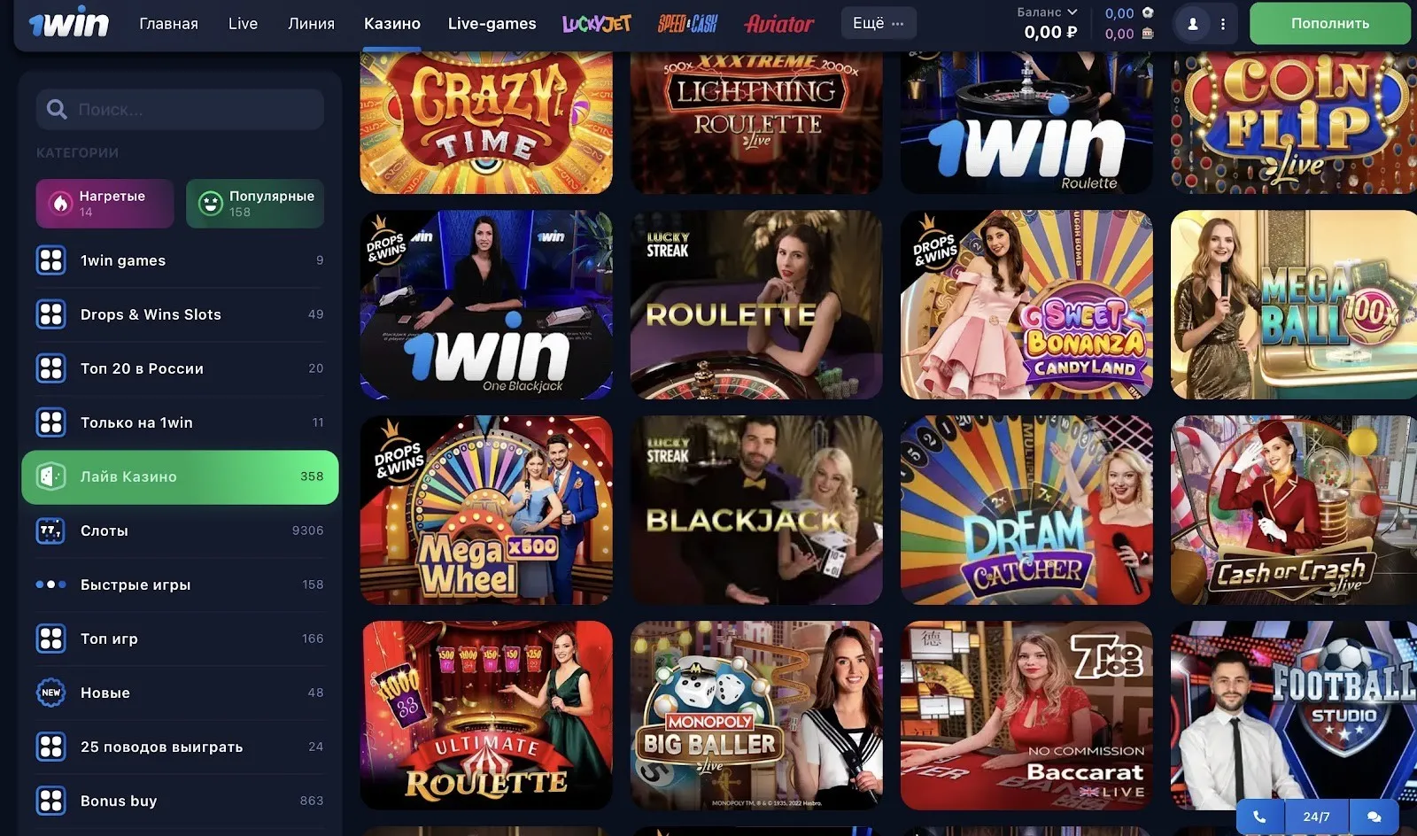 - Функциональная витрина казино. Этот раздел оператор развивает особенно интенсивно. Игрокам доступны краш-игры, а также тысячи игровых аппаратов.