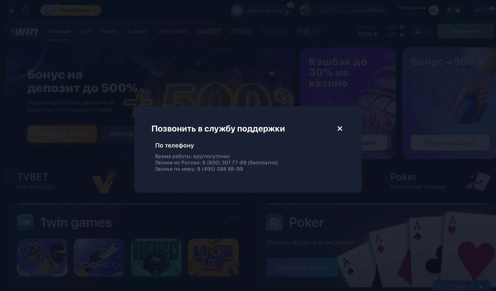 Техническая поддержка 1Win